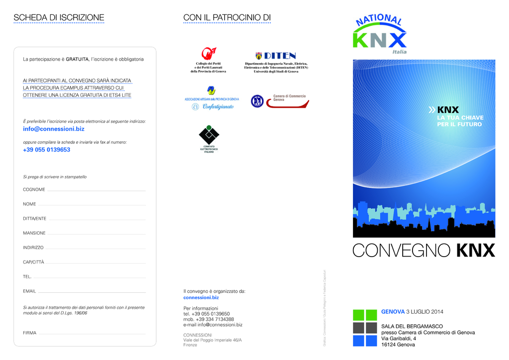 Il prossimo 3 Luglio, dalle 14.30 alle 19, avrà luogo presso la Sala del Bergamasco (Camera di Commercio di Genova, Via Garibaldi n 4, 16124 Genova) un convegno tenuto dall’associazione KNX Italia.
