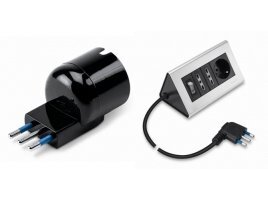 La presa multipla da scrivania unisce il design alla funzionalità di una classica multipresa: è dotata infatti di una spina salvaspazio con uscita a 90° 2P+T 16A, di 2 prese bivalenti 10/16A e di 1 presa 10-16A (standard italiano 10A e tedesco 16A), e di interruttore luminoso che consente, oltre alla normale accensione e spegnimento dei prodotti, anche l’eliminazione dello stand-by, ottimizzando quindi la sicurezza e il consumo energetico di tutti i dispositivi.