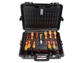 Il kit più esteso da 95 pezzi per il settore automotive viene fornito completo di cassetta portatile e comprende un vasto assortimento di utensili tra cui martelli, chiavi, punzoni, bussole, cricchetti, barre di prolunga, pinze, tronchesi e giraviti. Il kit VDE8/1000V da 36 pezzi per elettricisti, invece, è pensato per i tecnici professionisti che lavorano su o intorno a circuiti sotto tensione elettrica. Oltre a spelacavi e analizzatori di tensione, il kit comprende giraviti e pinze certificati VDE, testati singolarmente per l’uso fino a 1000 Vc.a.