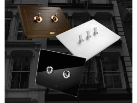 Ideale per gli amanti della semplicità e per ambienti moderni, in cui ogni dettaglio deve essere curato. I comandi a levetta e ghiera color cromo si inseriscono su placche in vetro, bianco e nero, o in alluminio spazzolato naturale e antracite. Prodotto che riprende il design di elettrodomestici e mobili vintage.Â